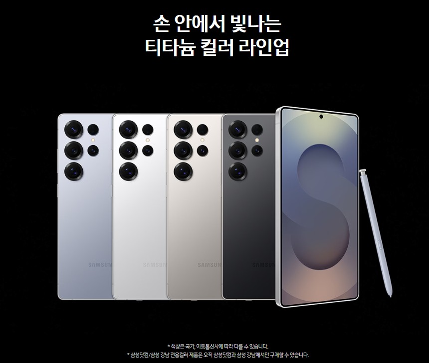 - 삼성닷컴 전용: Titanium Pink Gold, Titanium Jet Black, Titanium Jade Green